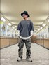 カットソー レイヤード オーバースタイルです。 カーゴパンツの柄を 目につきやすくして 後はシンプルにしました。 古着テイストも 流行りなので それらに合わせた スタイルです。