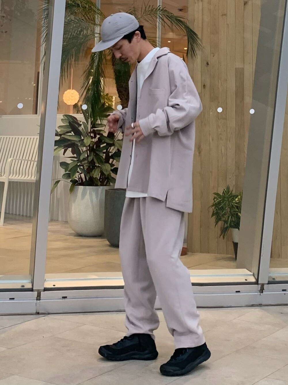 スムースタッチセットアップ 新作のスムースタッチセットアップを着用し秋のセットアップスタイルをご提案^_^ シャツはドルマンスリーブ、ボトムはタックの入り方が特徴的でシンプルなデザインでありながらワンランク上のコーディネートをお楽しみ頂けます!!