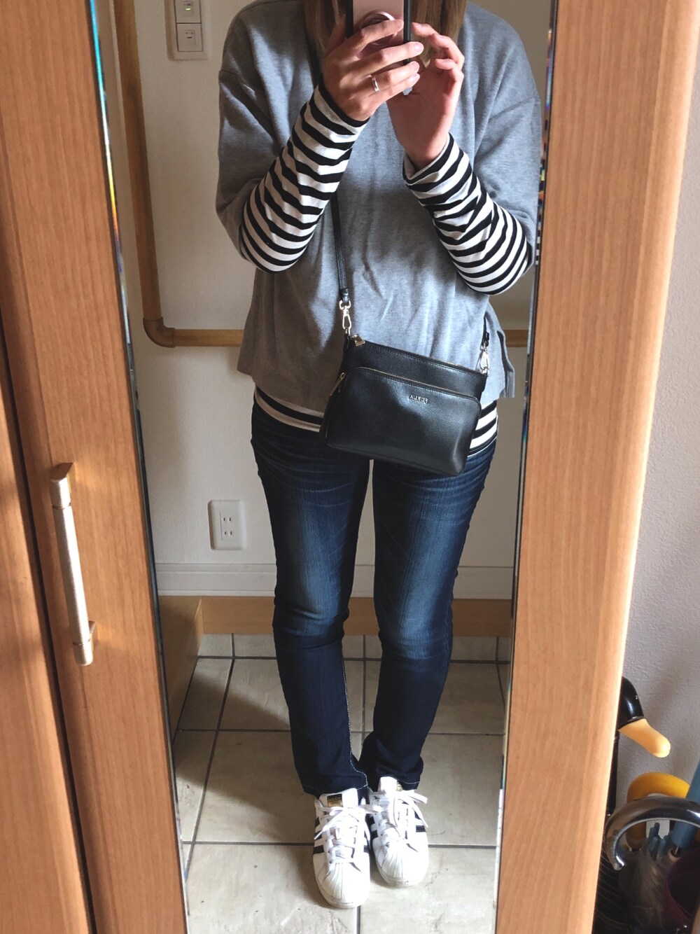 久々お休み! ひとりお出かけコーデ。 どーも天気が微妙で服装もカジュアルテキトーになる😓 けど…この重ね着がスキ🤣 moussyのデニムはやっぱりスキ😍