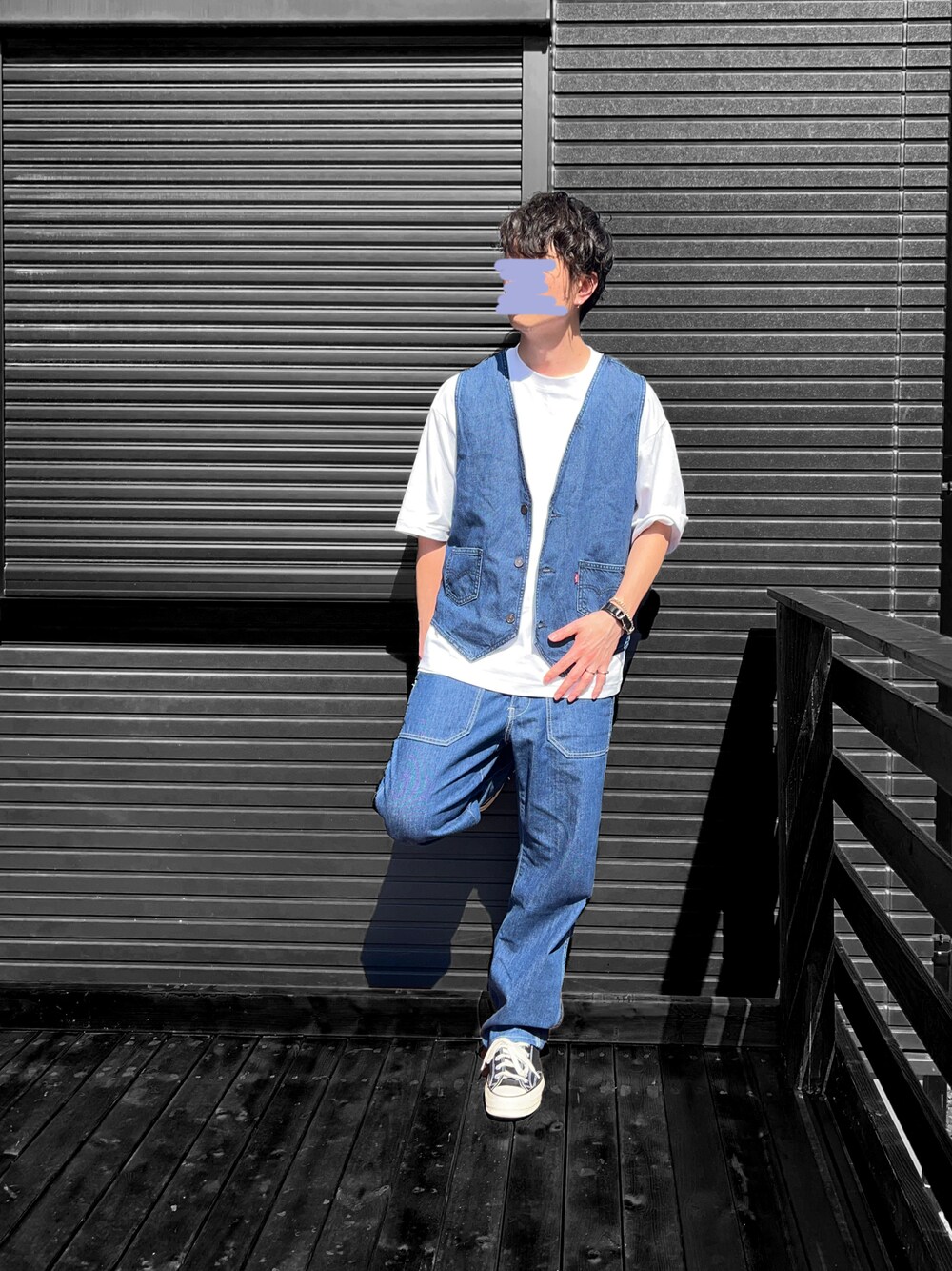 ご覧いただきありがとうございます! 【30代パパでもオシャレでいたい】 一歩間違えると、、コーデ 下チノパンかワークパンツが合うデニムベスト!デニムonデニム挑戦してみました! デニムの色、白とかに変えても良さそうです!