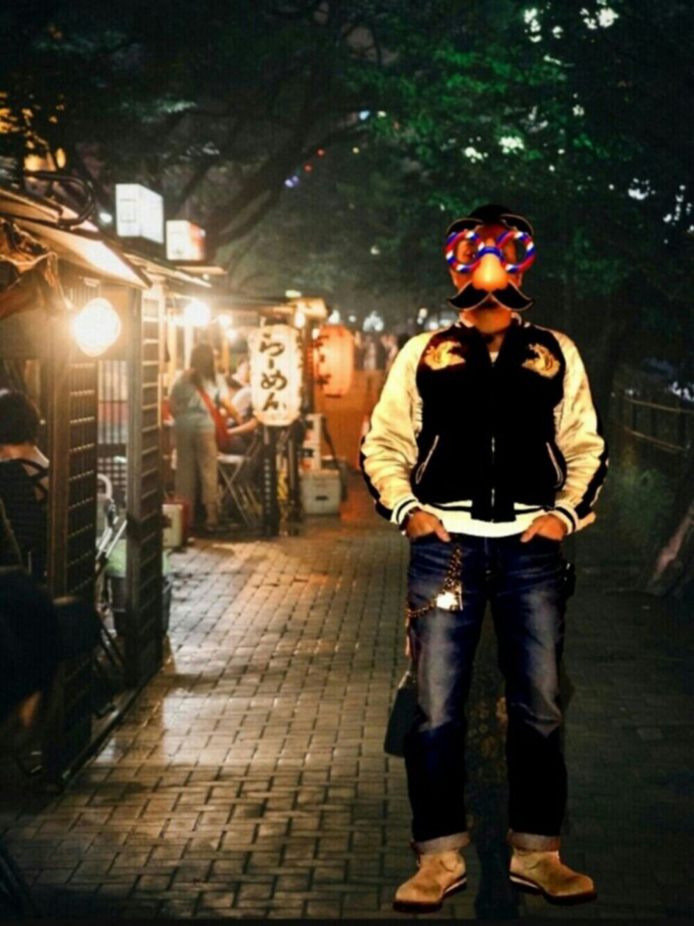 飲んだ帰りに撮りました!! 風景は、博多が誇る繁華街、中洲の屋台街ですが……合成です💦笑 自分は、自宅近くの公民館で飲んでました💦(笑) 公民館で十分酔えました😆笑 中洲はしばらく行ってません😅 中洲で酔いちくれた日々が、懐かしゅうございます😢笑 このスカジャンは、10年前に購入したもので、当時ヘビーローテーションで着てまして……ある夜、飲んだ帰りに、小腹が空いたので、カレーヌードルをすすりながら、上機嫌で歩いて帰ったんですが……翌朝、カレーの匂いで目が覚めて、起きるとスカジャンがカレーヌードルのスープまみれでした😱笑 ……歩きながら、カレーヌードルを食べるのはやめましょう!! 今日の一曲 日本全国酒飲み音頭/怒髪天
