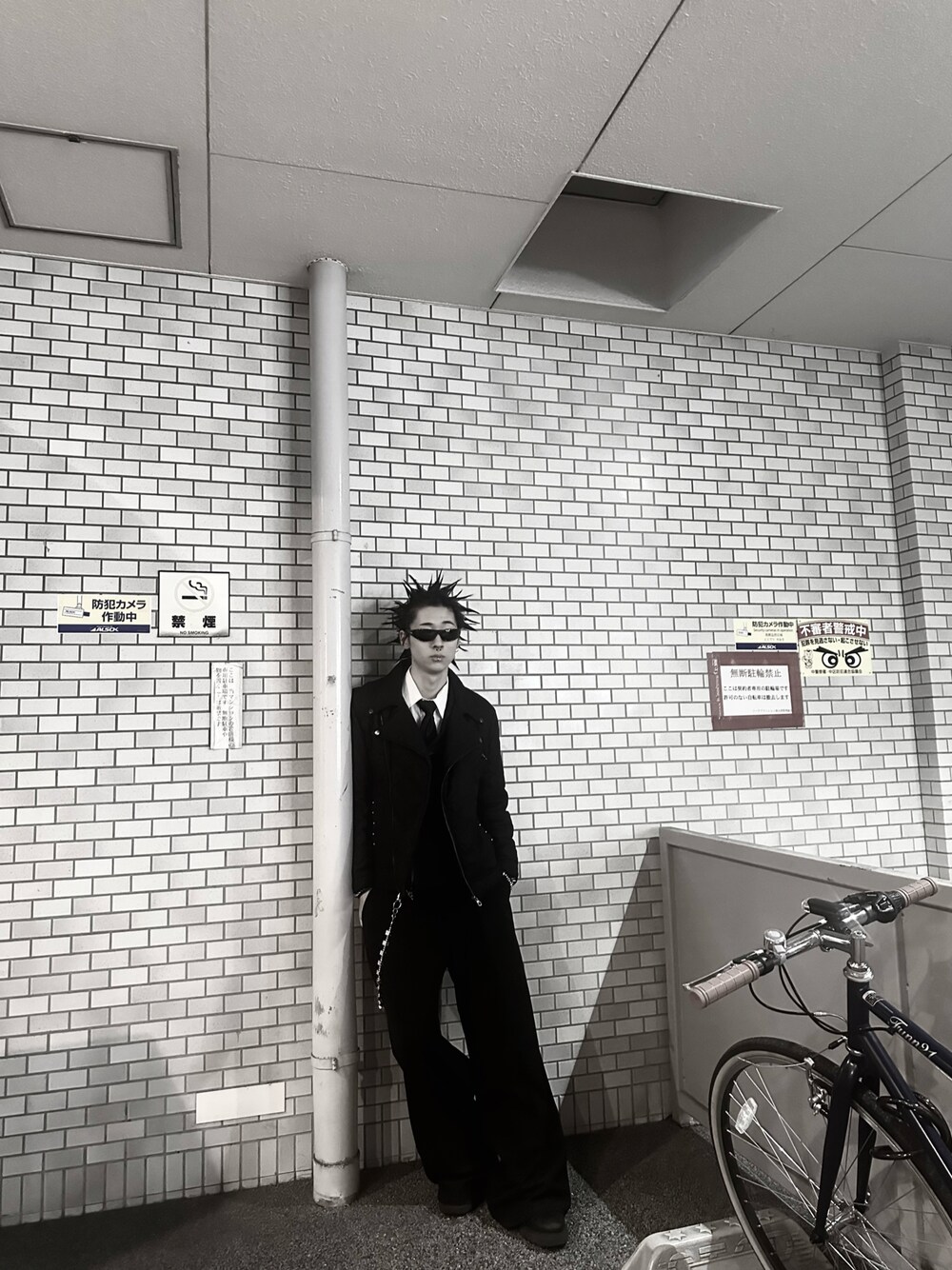 全体的に優しいパンクスタイルに 髪型に視線が行くようにうるさすぎず しっかりと決まるアイテムでコーデを組みました