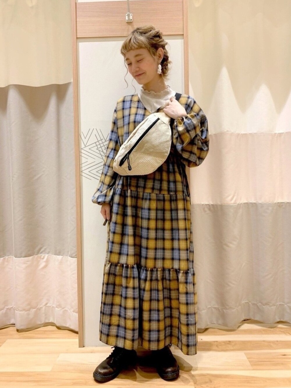 こんばんは❁⃘*.゚ Samansamos2blueの新作のご紹介です🌼 マスタード×ブルーのチェック柄が目を引くティアードワンピース Vネックの首元はガーリーになりすぎず 綺麗に着られるのでおすすめです◎ これからの時期はインナーにハイネックニットを合わせても ♡゛ 胸元のサイドリボンでシルエット調節が出来るのも可愛いすぎるポイントです!!