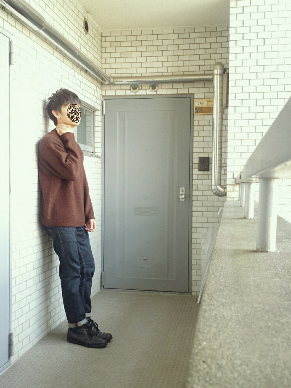 その他のトップス、ブラック系のブーツを着用したメンズの秋コーディネートの1枚目の写真