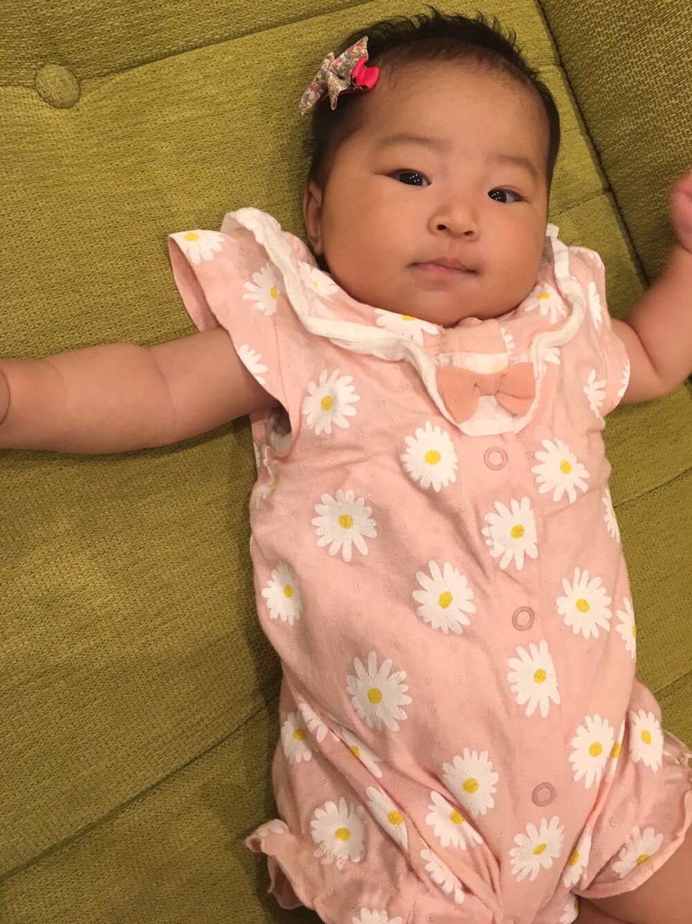 ヨウちゃんのロンパース「e-baby/天竺マーガレットプリントカバーオール」を使ったコーディネート