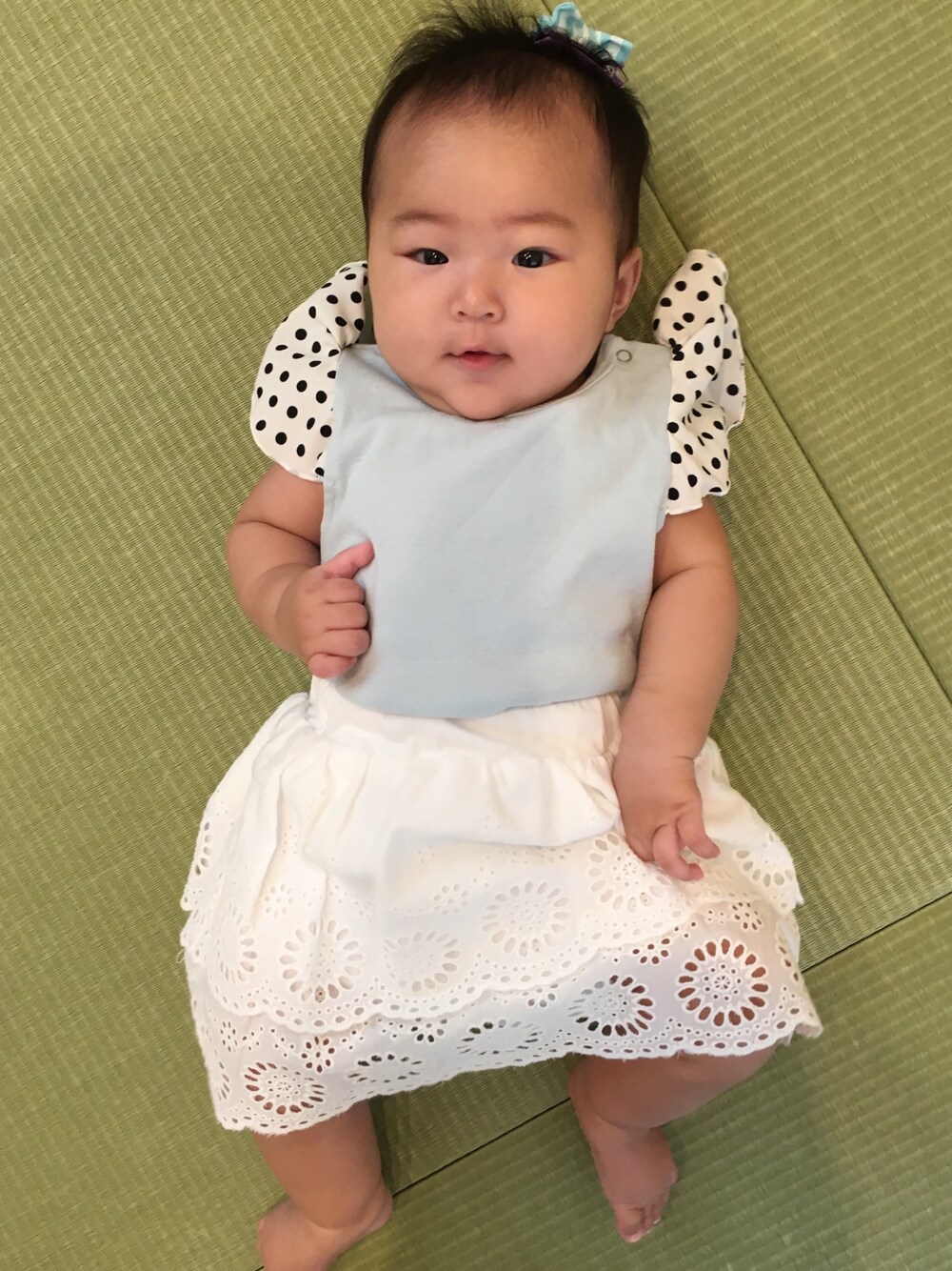 娘の爽やかコーデ👒 ヘアクリップ以外、petit main💛 トップスは、水着と一緒に半額で購入❣️ スカートは、出産祝いで頂いたもの💖 3ヶ月でセパレート‥‥ほんとに大きな娘 花柄・レース・ドットが好きな私💕