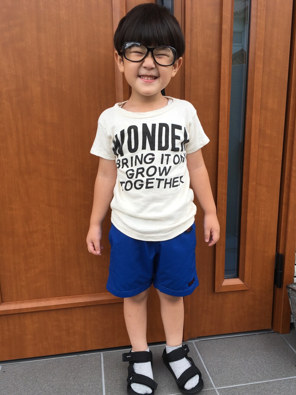 友達の子どもが履いていて、 気になっていたグラミチのショートパンツ👖 DENIM DUNGAREEの店舗で最後の1点をゲット💙初めて履いたけど、履きやすくて息子も気に入ったみたい🤤💕 色がとても鮮やかでカッコいい👍🏻 ダテメガネは小さい頃に買っていて、写真用にかけさせてみた✨👓 本人はノリノリ👯♀️