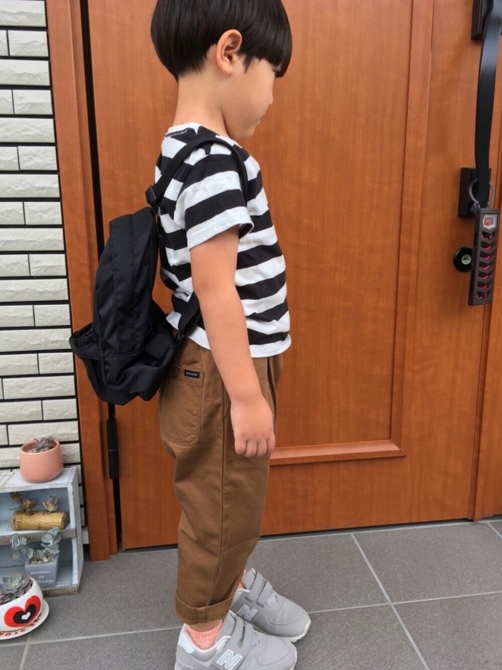 息子と娘のブラウンコーデ🌰 COMECHATTOのパンツ✨ 試着させてみたら形が凄い可愛くて🤤💕 秋色ブラウンこれから大活躍しそうです🧡 リュックはシンプルなのを探して探して ようやく見つけたお気に入り💖 私も黒リュック持ってるから、お揃いで使ってます🎒