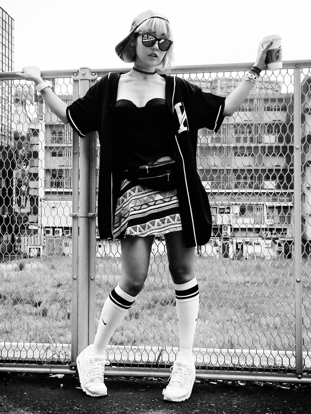 black&white #ootd bistier gvgv skirt amap socks&kicks nike tops KNYEW cap cheap monday