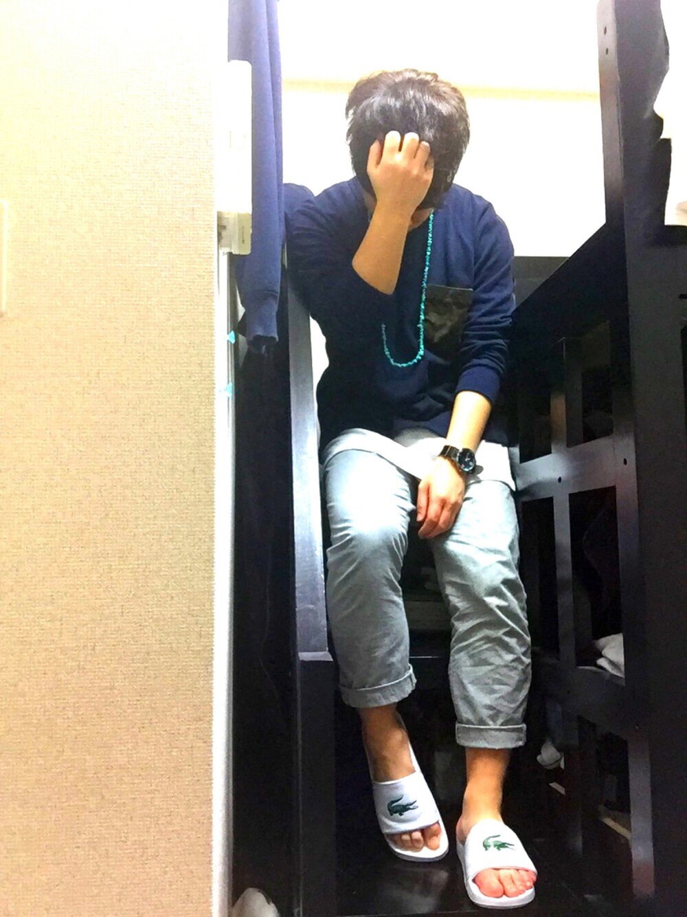 飲み会やって朝起きてみたらiPhoneの画面が割れてました。 ラコステのサンダル!