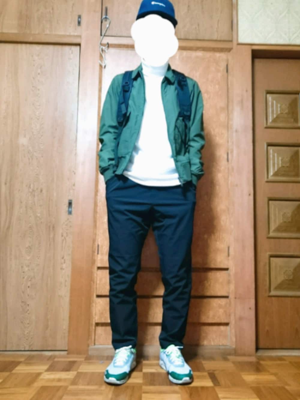 いつもお世話になっております。 春の装いです。 グリーン×ブラック×ホワイトの組み合わせです。 nico andのパッカブルパンツは、ややルーズ目なシルエットのパンツです。