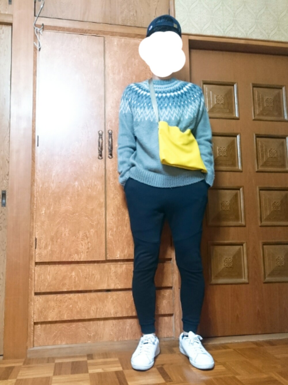 いつもお世話になっております。 差し色にイエローのサコッシュを使用。 白スニーカーも良き。 NIKE、PUMA及びchampionとスポーツ系ブランドのアイテムを使用してます。