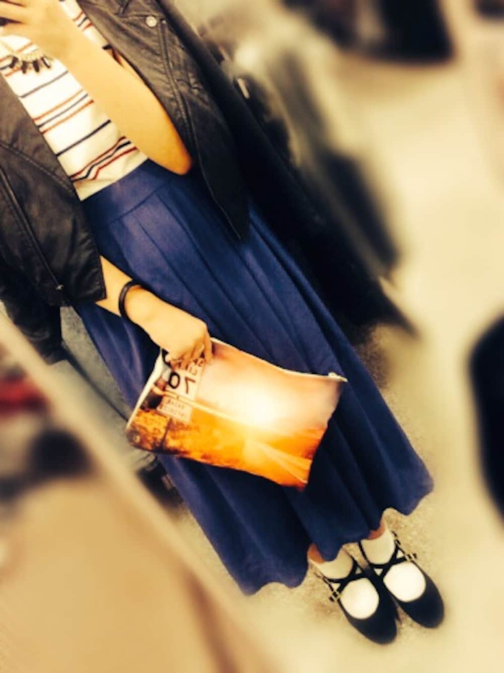 初めての投稿です♡! スタジャンを着たら少し重い雰囲気に なってしまうので羽織って、 レトロな雰囲気に仕上げました \( ¨̮ )/