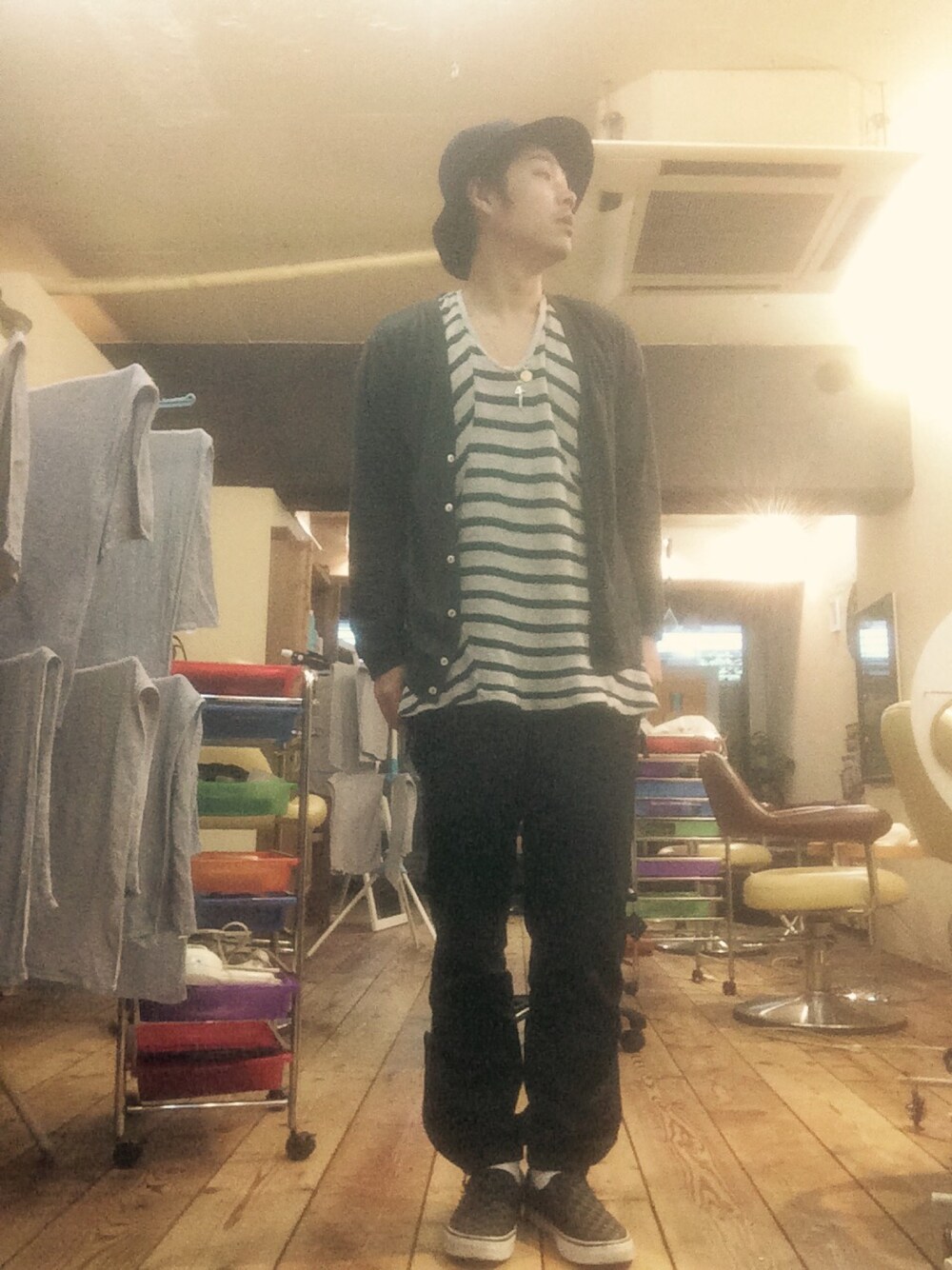 久々の更新です(*^^*)今日は最近お気に入りのクリストファーフルメールのイージーパンツ✨コットン素材でリブ仕様!なんにでもあわせやすいので今日はちょっとモード目にコットン素材のボーダーニットに薄手のカーディガン+つば広ハットで合わせてます👕