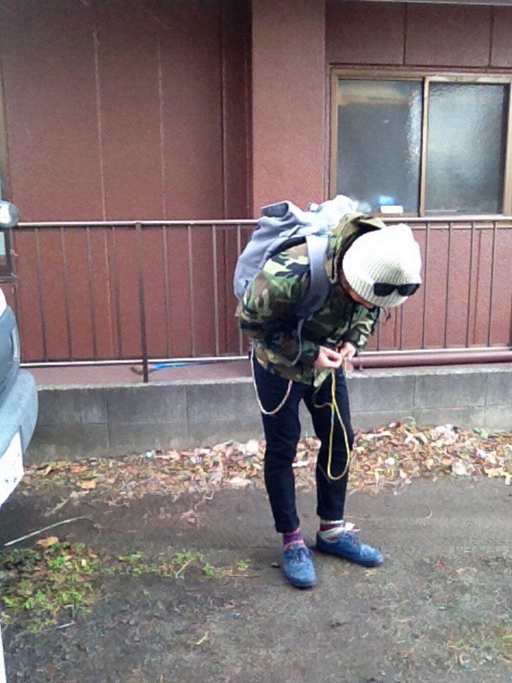 迷彩JK:古着 パンツ:無印良品 リュック:C6 靴:VANS サングラス:VANS