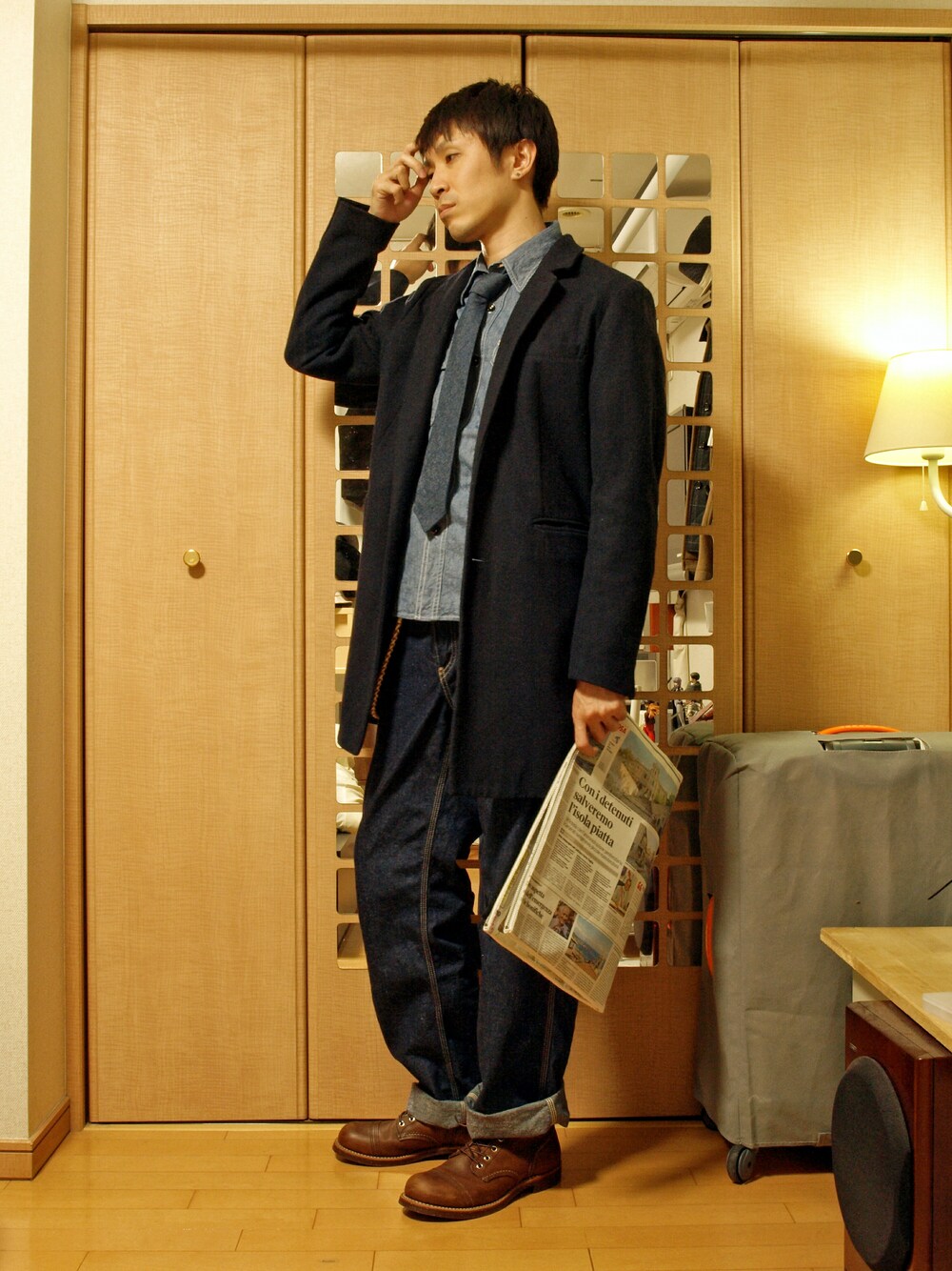 今日も元気に休日出勤♪ (´Д`) …ということで「休日だけど仕事」という非常に悲しいテーマのコーデです(´;ω;`) クラッチバッグなんですが、表面のデザインが本物の新聞柄になっていて、面白いので買っちゃいました( 〃▽〃) 小窓に新聞読んでる風ポーズ載せときます(笑) 【追伸】 hiroさんYucchiさん主催の「MENS FES」に参加予定だったのですが、仕事が多忙ですっかり失念しておりました(´Д`|||) ただ、偶然にも最新であるこのコーデがアウター着用でしたので(そしてギリ決めポーズっぽい感じにもなって……たので!)参加させて頂きます!…(;´д`) 時間があれば、明日にでもちゃんとしたコーデをUPします!