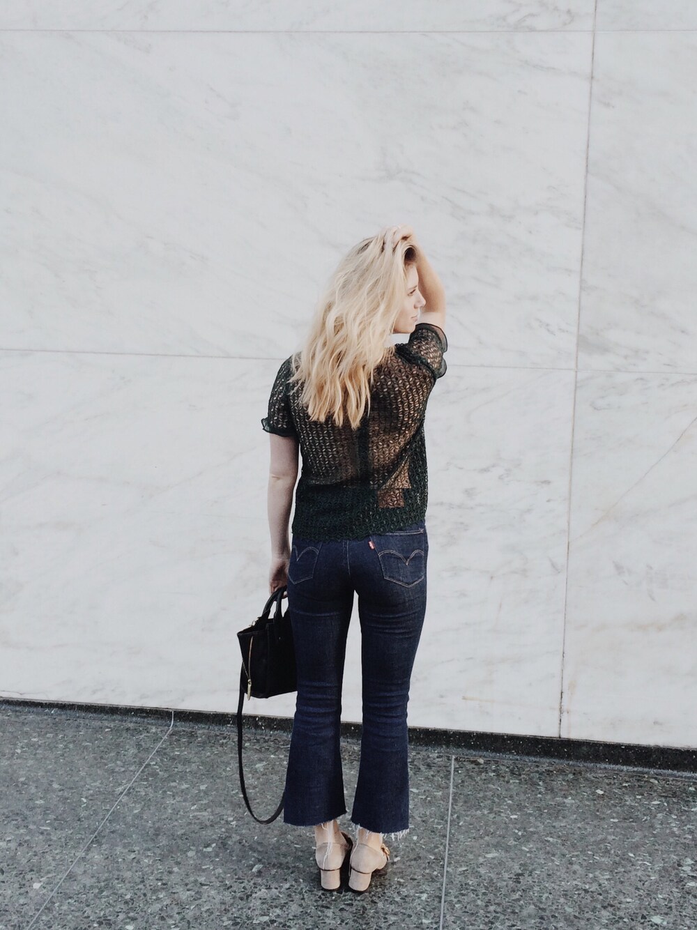 This top is sheer in the back and lined in the front; perfect for date night or work with a tank underneath.