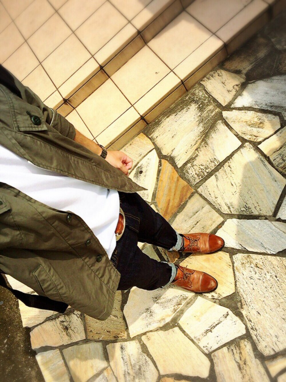 omiのデニムパンツ「MEN ストレッチセルビッジスリムフィットジーンズ」を使ったコーディネート