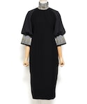 ブラック系のドレスを着用したレディースの秋コーディネートの1枚目の写真