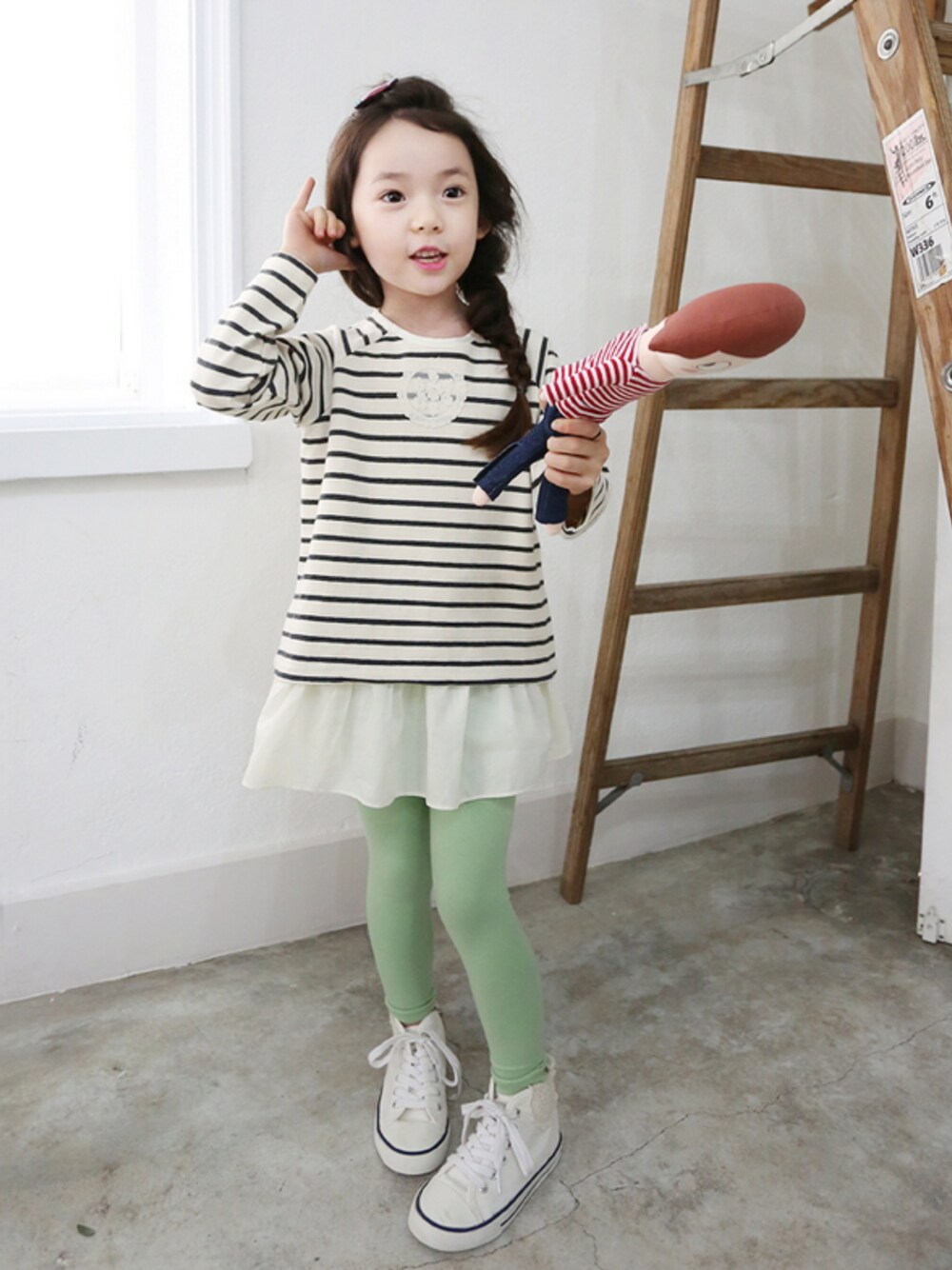 ストライプフリルワンピース ほんのりして清潔感のある一着★ フロントのフラワーレースディテールがラブリー♪ 裾のフリルディテールで女の子らしさプラス レギンスとの相性抜群♪ ★新規会員100円割引クーポン支給 ★送料1200円、9000円以上のお買上で送料無料 サイトはこちら↓ http://jp.thejany.co.kr/