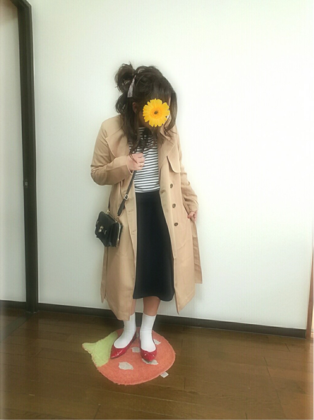 こんばんは(*´꒳`*) いつもいいね、セーブ、フォロー ありがとうございます(*^^*) 昨日のコーデの 足元、かばんを変えた アウターバージョンです(*´꒳`*) ベージュのトレンチコートに 赤のバレエシューズ♡かわいいですよね♡ 背が低いのでトレンチコートに 着られてる感ありますが、、、、(*´-`)笑