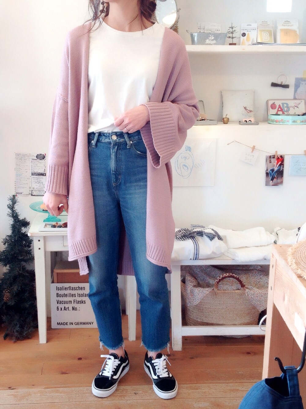 風が強くて寒かった週末。 コットン入りのニットガウンでカジュアル♡