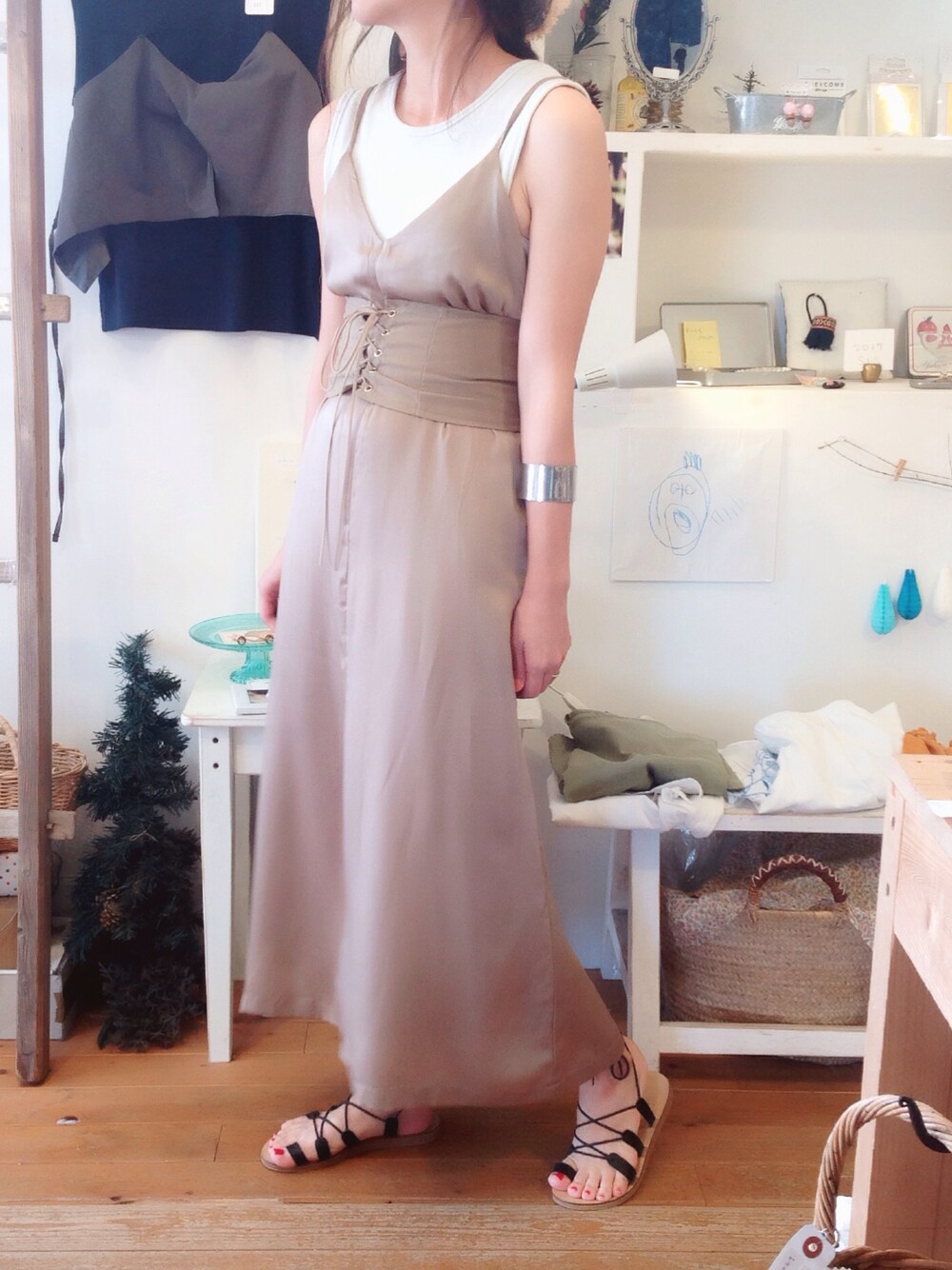 ビンテージサテンのワンピース。 同系色のコルセットベルトを合わせてみました✨