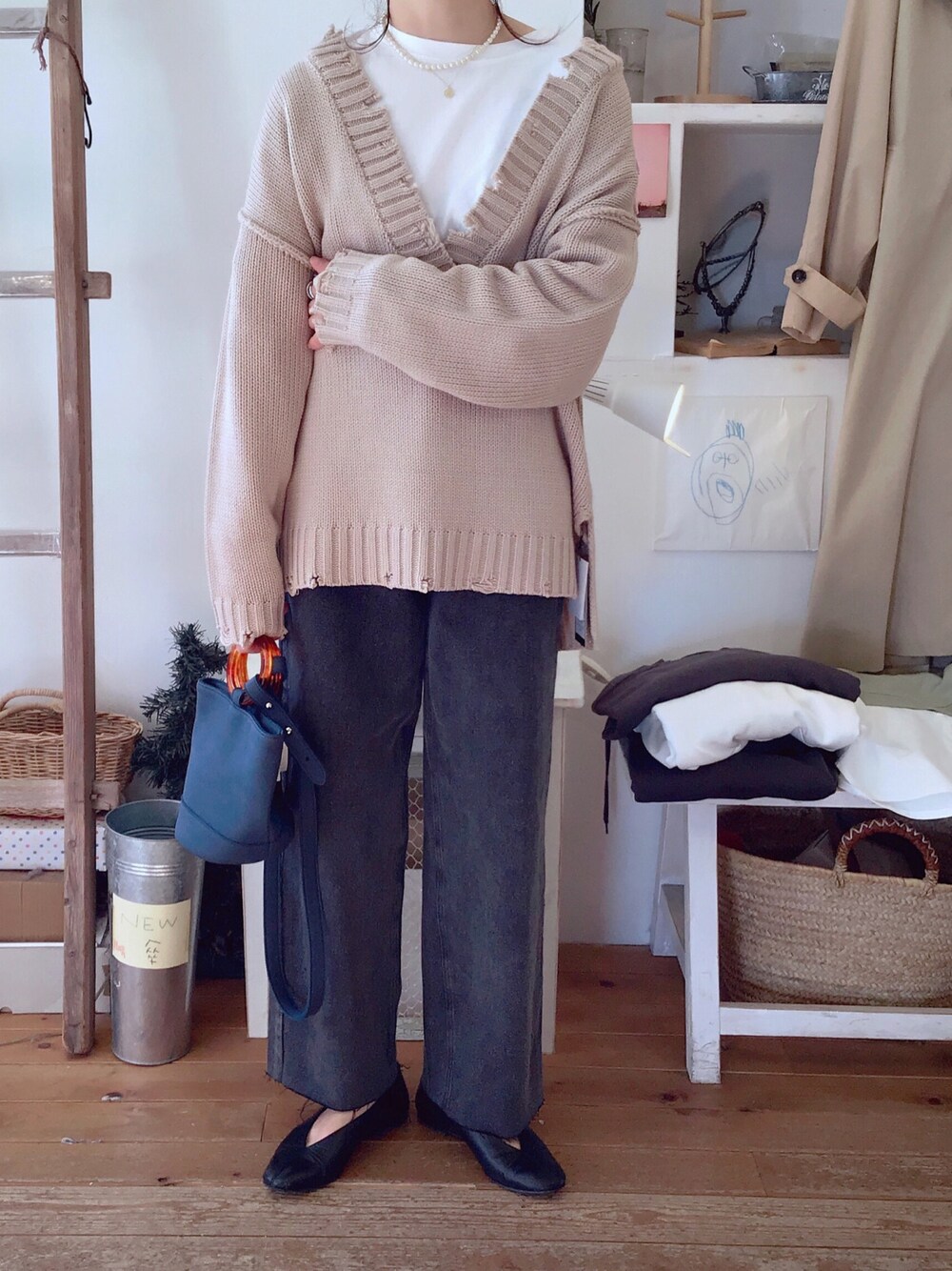 ブラックデニムパンツ♡ カジュアルな日に。 ロングニットで大人っぽく〜。