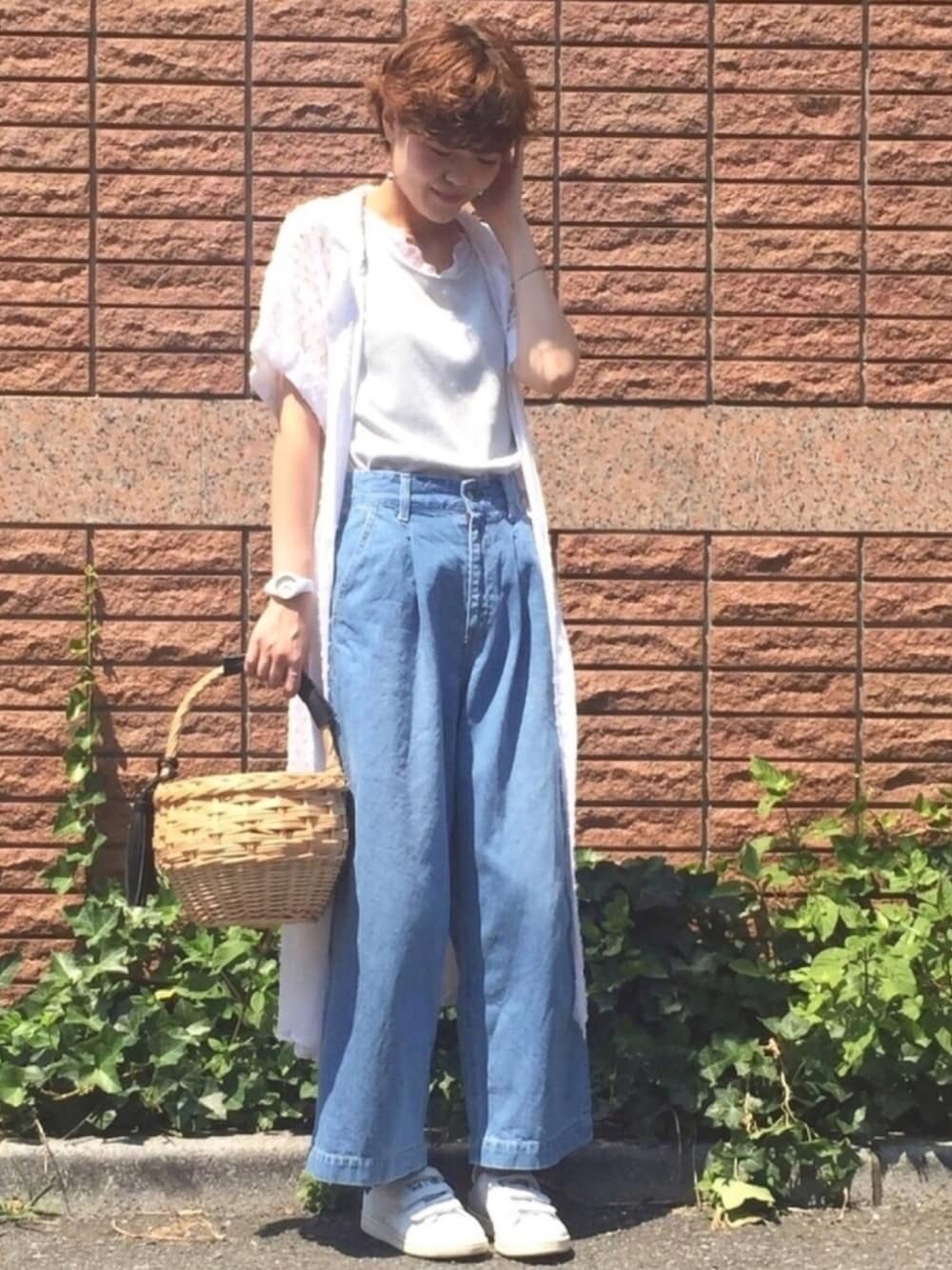 こんにちは☺️ 最近、朝起きると寝グセがすごくて、頭が爆発してます…💦落ち着かせるのが大変です💦 髪の量も多くて…いつも美容院でカラーするときは、カラー剤のおかわりします🙇♀️←塗ってる途中で足りなくなり、美容師さんがまたカラー剤を作りに行ってくれます😅 さて今回は、お気に入りのデニムワイドパンツに、久しぶりにシースルーのガウンワンピを羽織って、白でまとめたコーディネートです♩インナーは念のため透け防止でタンク二枚重ねです。 デニムワイドパンツは着回しがきくので、重宝してます〜🙌