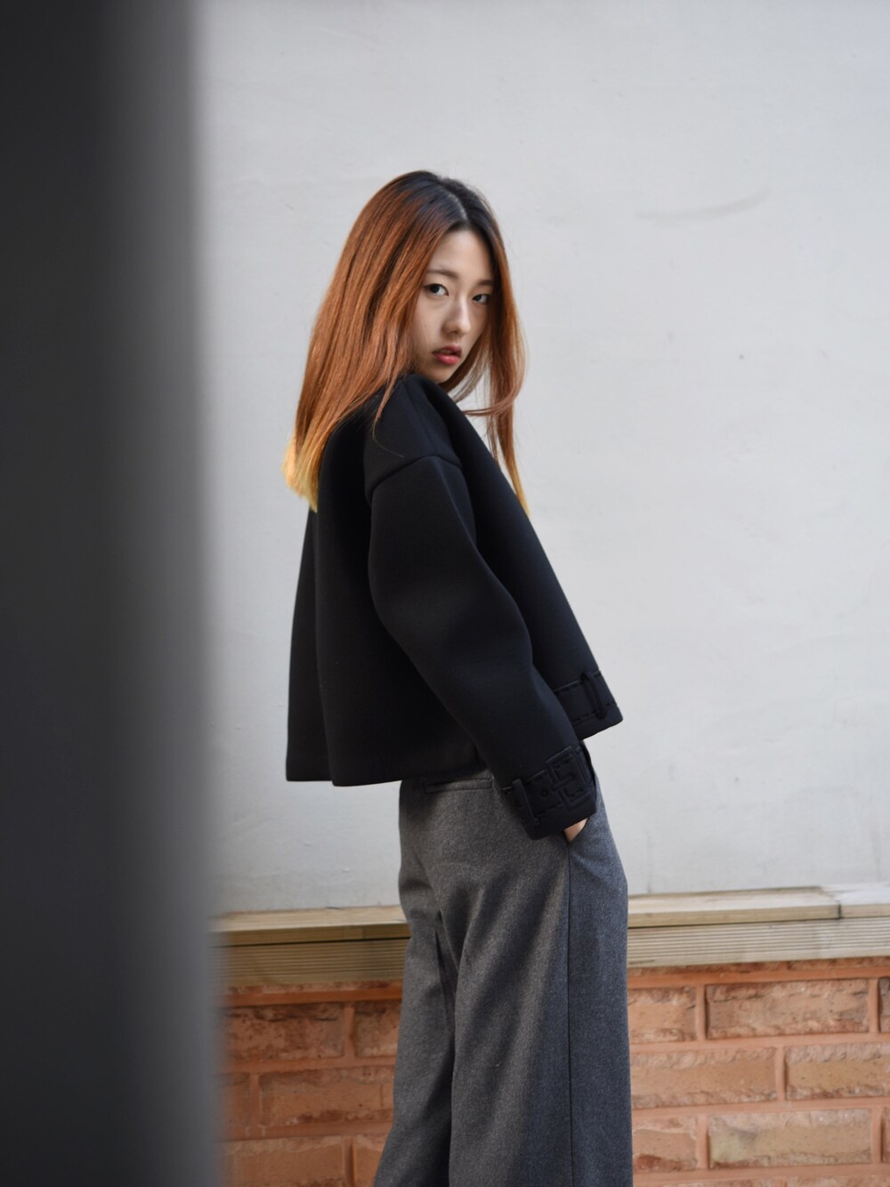 모델 양선아씨가 SOUTH TOP과 EAST PANT로 시크한 룩을 선보이셨습니다. 멋진 표정과 함께 스타일이 더 돋보이는 사진입니다.