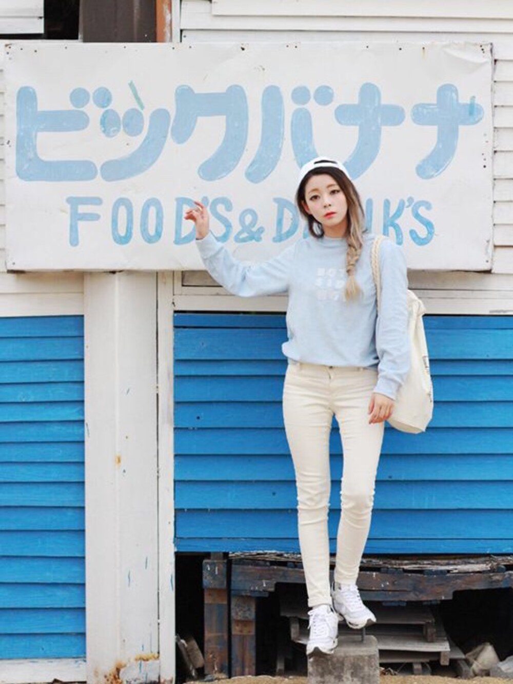 더스튜디오케이 서포터즈 김혜인님이 the studio K 2015 SS Collection BOTH SIDE NOW TERRY SWEAT 을 입고 시원한 느낌으로 연출하셨습니다. 화이트와 스카이 블루 컬러의 조화가 멋진 스타일링입니다.