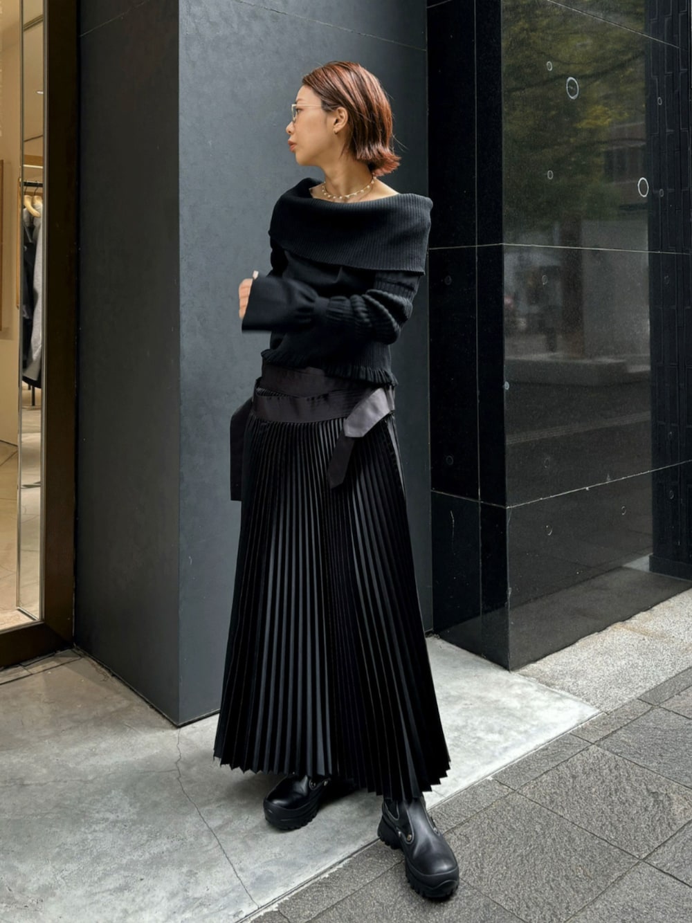 THE TOKYO STAFF(THE TOKYO)のニット/セーター「【FETICO/フェティコ】別注 STRIPE KNIT OFF-SHOULDER TOP/ストライプニットオフショルダートップ/リブニットオフショルダー」を使ったコーディネート