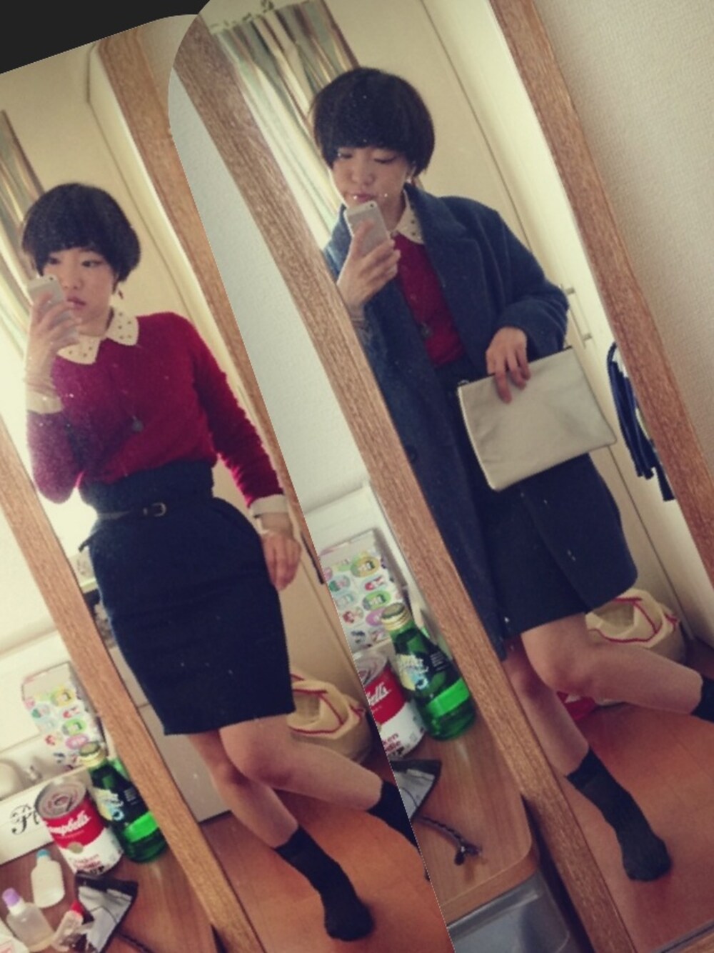 アウター*レイカズン カーデガン*UNIQLO トップスシャツ*dazzlin タイトスカート*used 靴下*UG