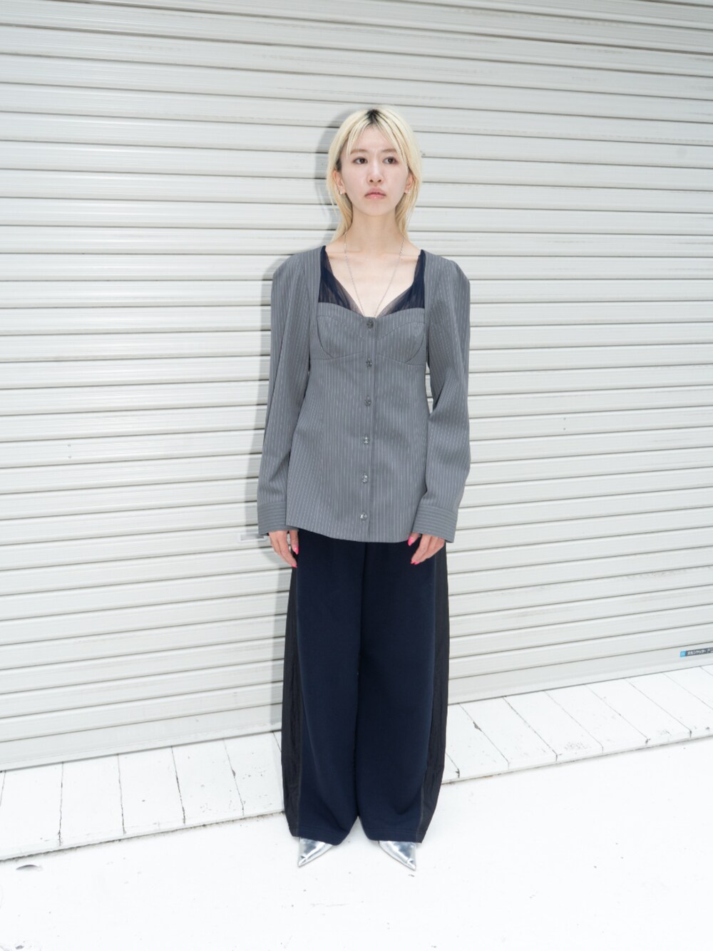 THINGS THAT MATTER(THINGS THAT MATTER)のシャツ/ブラウス「STRIPE BUSTIER SHIRTS / ストライプ ビスチェ シャツ」を使ったコーディネート