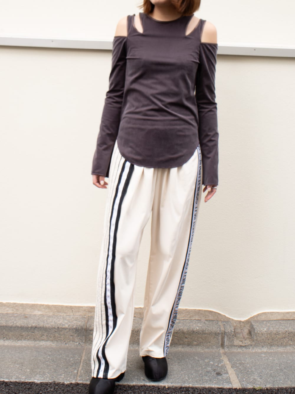 THINGS THAT MATTER(THINGS THAT MATTER)のスウェットパンツ「TORCHON LACE SWITCHING PANTS / トーション レース スイッチング パンツ」を使ったコーディネート