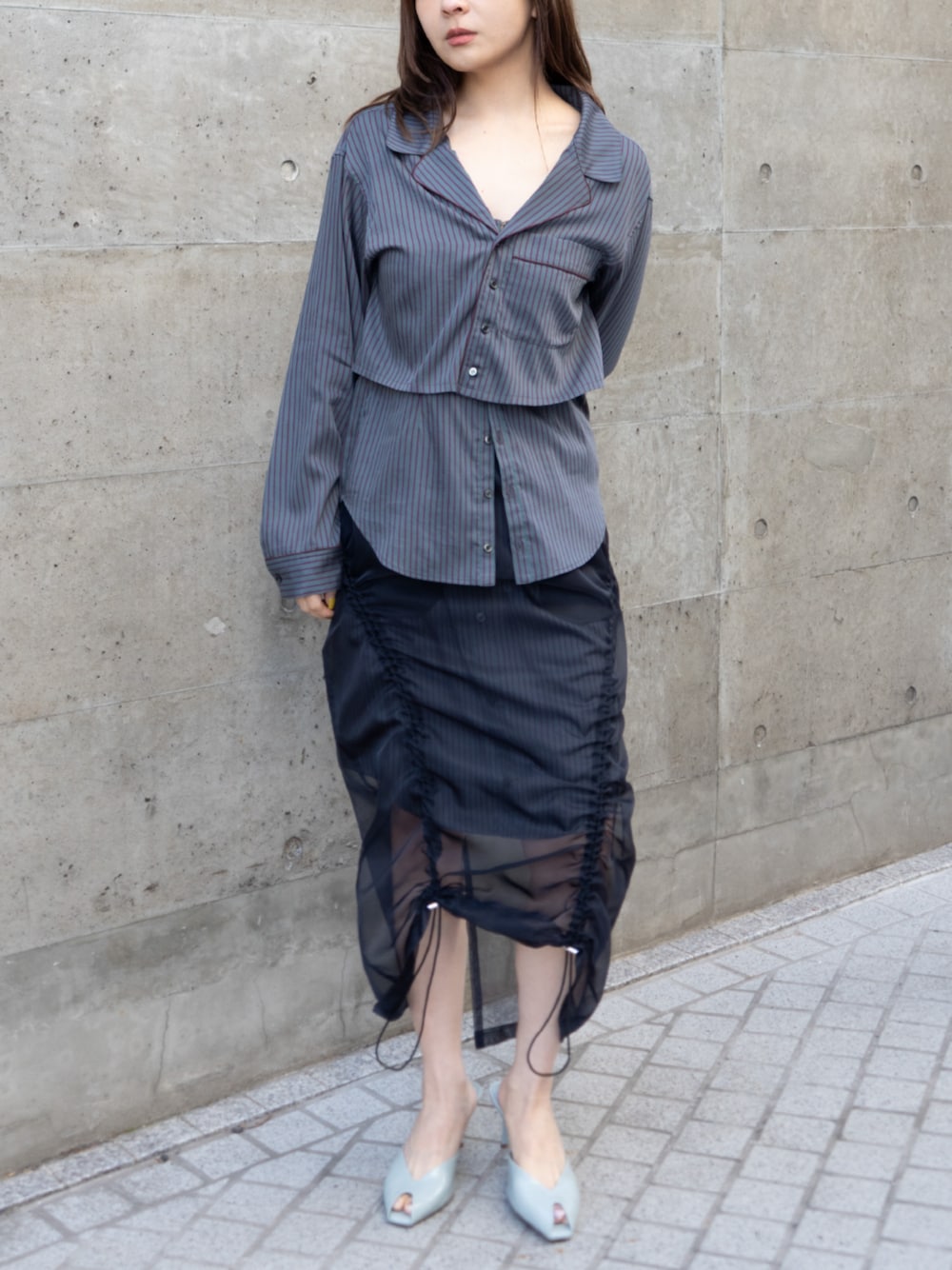 THINGS THAT MATTER(THINGS THAT MATTER)のシャツ/ブラウス「STRIPE PIPING SHIRT ENSEMBLE / ストライプ パイピング シャツ アンサンブル」を使ったコーディネート