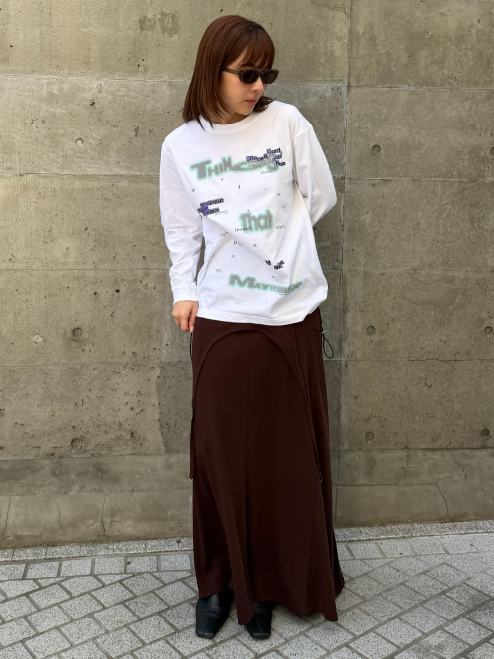 THINGS THAT MATTER(THINGS THAT MATTER)のTシャツ/カットソー「CHAOS PRINT LONG T-SHIRT / カオス プリント ロングTシャツ / ZOZOTOWN限定商品」を使ったコーディネート