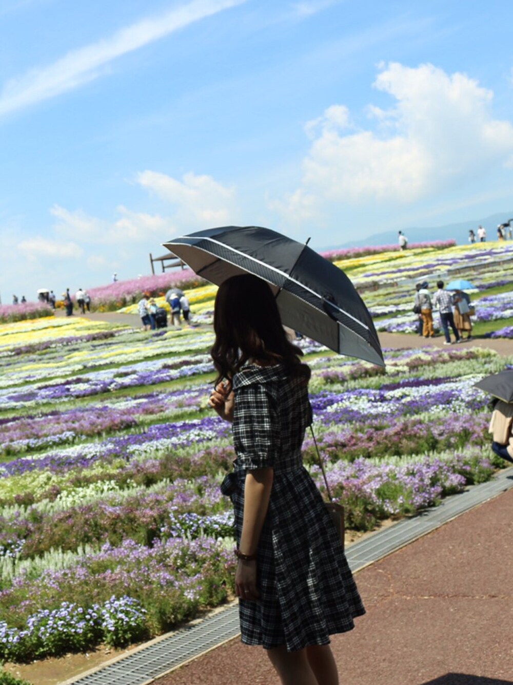 この前花フェスタに行った時のコーデです✨ チェックのオフショルダーワンピースに 下は白いサンダルです🌼 いつもいいねありがとうございます(*˘︶˘*)