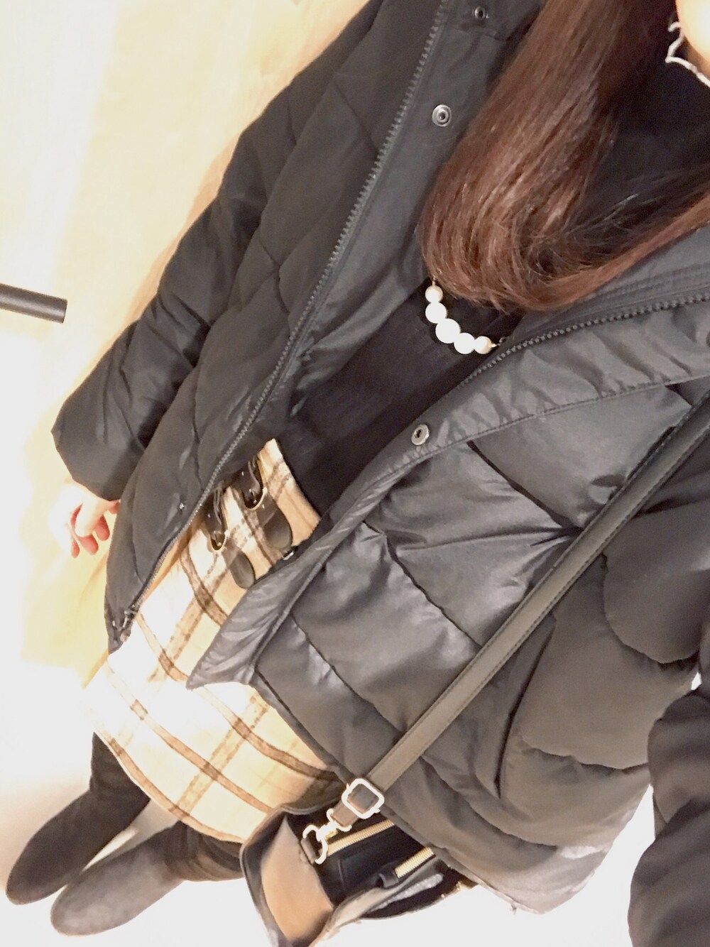 こんばんは✨ 最近寒くなってきたので初めてダウンを買いました! タイトスカートに寒いので ニーハイブーツを合わせてみました😇 いつもいいねありがとうございます✨