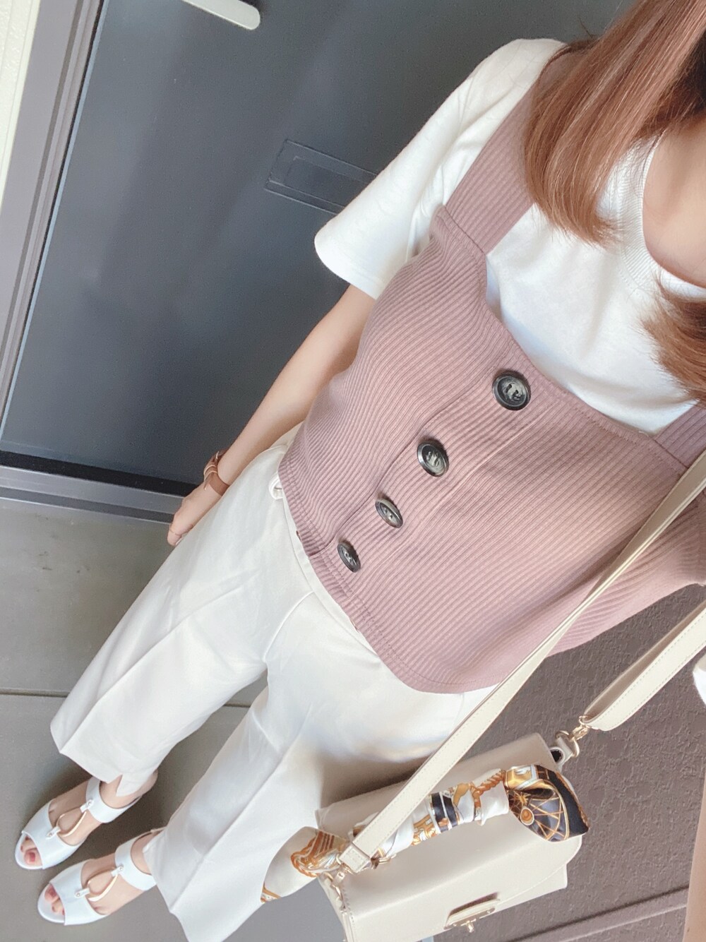 こんにちは✨ 会社の同期と飲み会へ🍻 流行りのビスチェコーデ( ̄▽ ̄) 最近ベージュの服が多いような気がする笑 いつもいいねありがとうございます💗