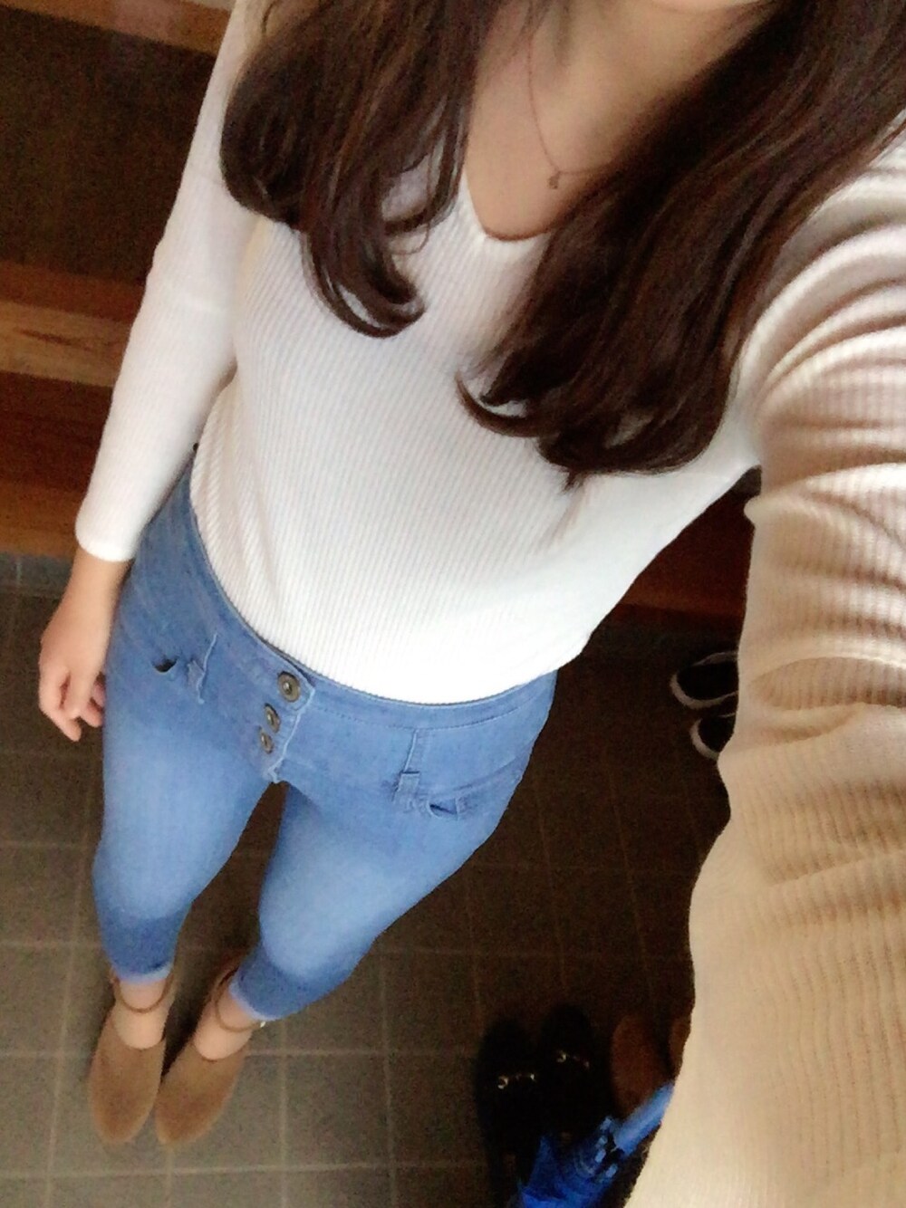 今日は会社の新年会に🍺 春っぽくデニム×白トップス✨ トップスの袖が広がってて可愛いです(*´ч`*) いつもいいねありがとうございます😊