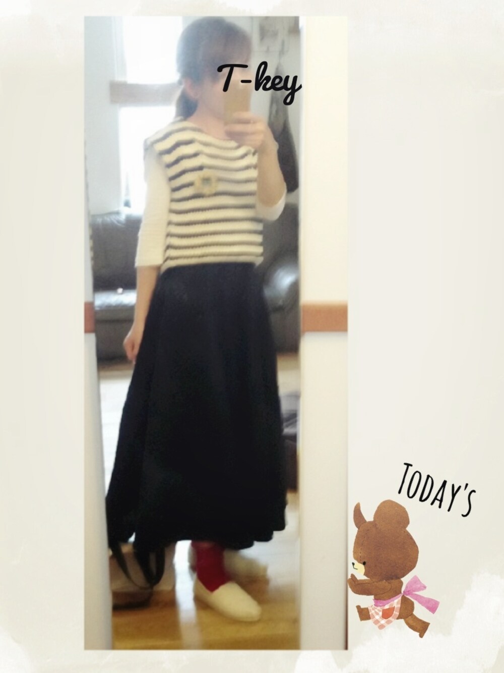 ↟ 見事に小学校の役員に当選してしまい(ㆀ˘・з・˘) 今日は初委員会に行ってきました… 行き道どっしゃぶりの雨でやめようかな…と思ったけどhomspunのこのスカートがはきたかったのでこのコーデで行ってきましたよ。 案の定ボトボトになりましたが(;^_^A ↟