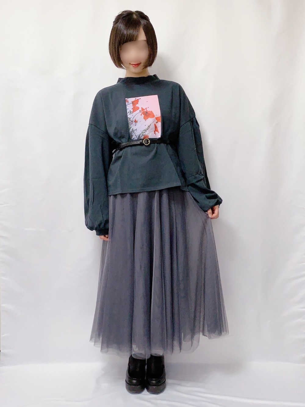 。* ❤︎ 見てくださりありがとうございます ❤︎*。 ADOLESCENCEさんのアソートプリント袖タックロンTの着回しコーデです(*˙˘˙*)❥❥ 今日はGRLさんのチュールロングスカートと合わせました♡ ベルトでウエストマークをして脚長効果✨