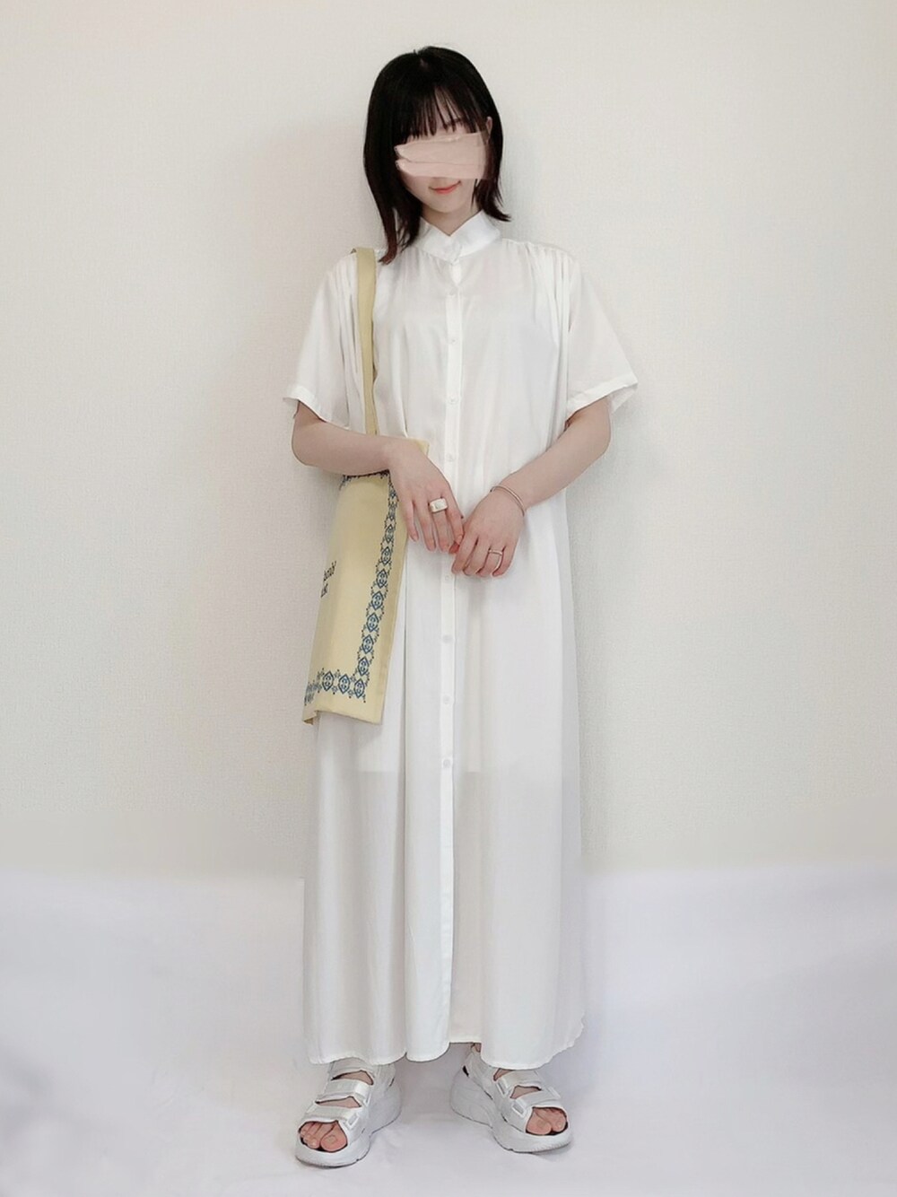 KANONのシャツワンピース「スタンドカラー半袖シャツワンピース」を使ったコーディネート