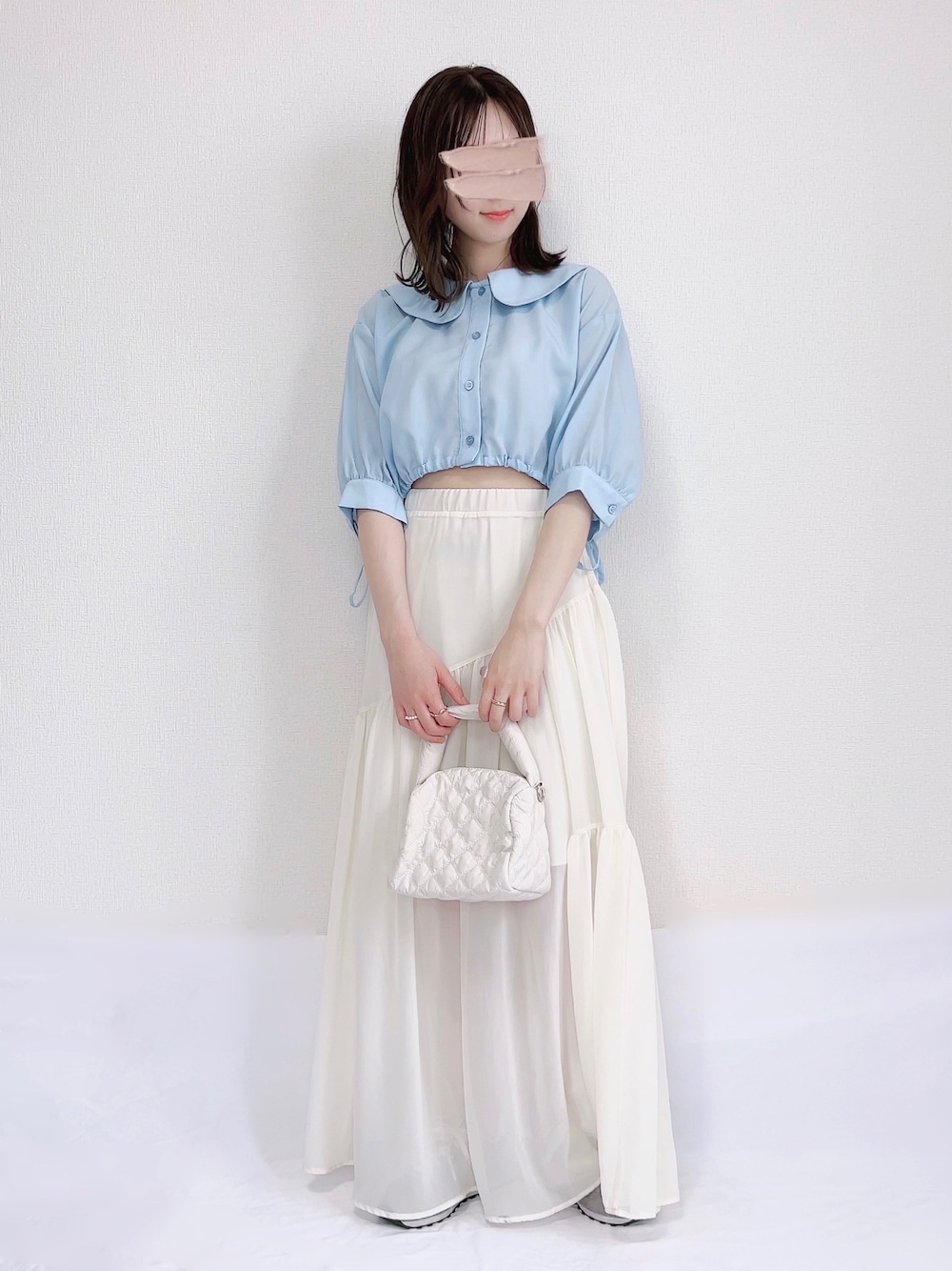 見てくださりありがとうございます🐰♡ moulis'の夏らしい水色のブラウスで カジュアルガーリーコーデ🎐🩵 ちなみにスカートもmoulis'🫶🏻🤍
