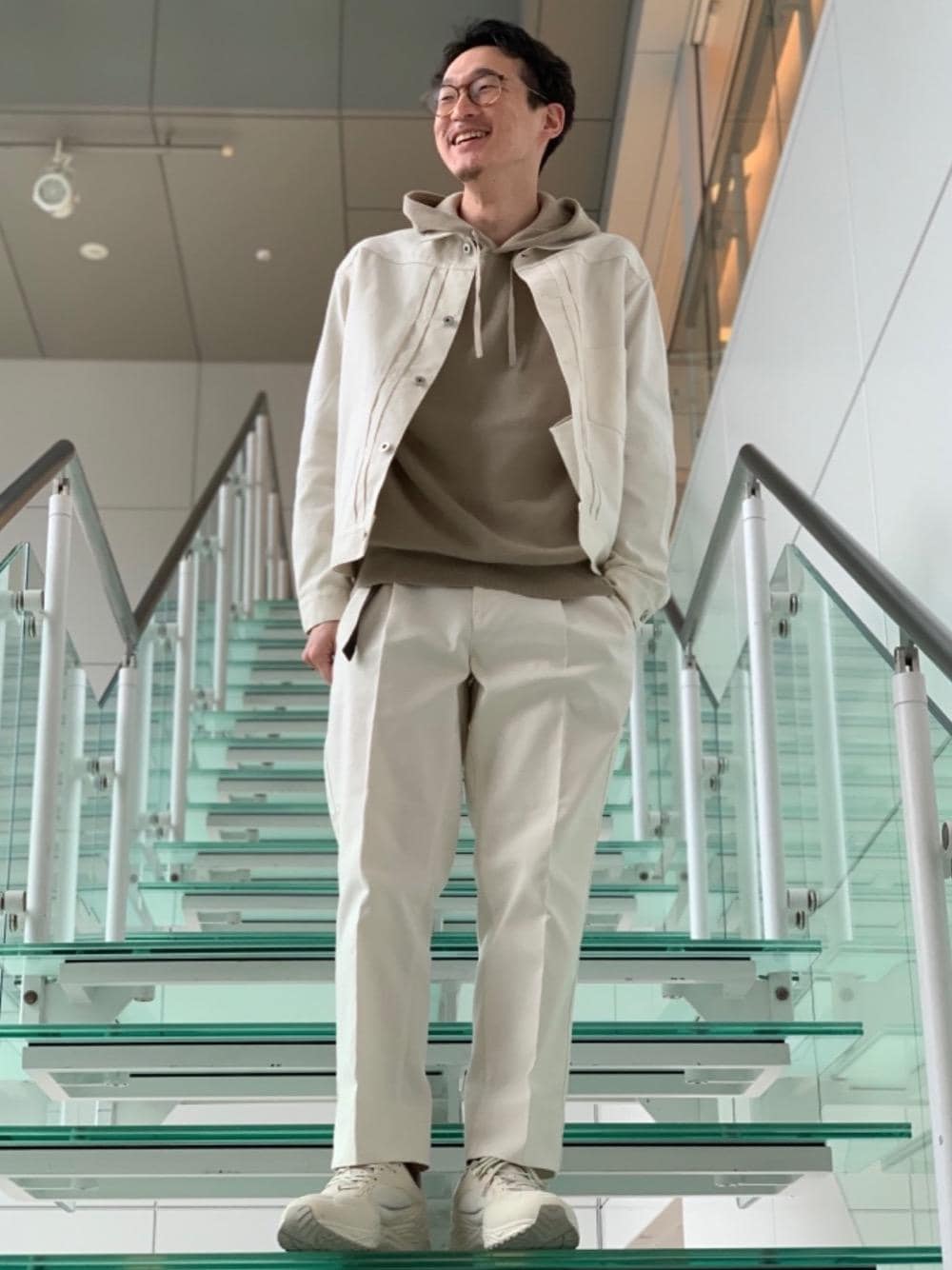 【身長】171cm【size】羽織り S・パーカー S・パンツ S・シューズ 26.0cm オフホワイトをベースにブラウンを挿した、クリーンコーデです。 オフホワイトのお色味なのでホワイトよりは取り入れやすいかと思います。