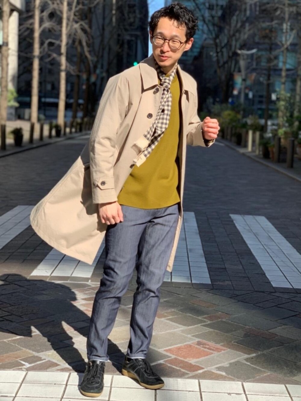 【身長】171cm【size】コート S・ニット S・パンツ S・シューズ 40 ベーシックな合わせに柄物のストールやマフラーをアクセントとして使うだけでも華やかな印象になります。