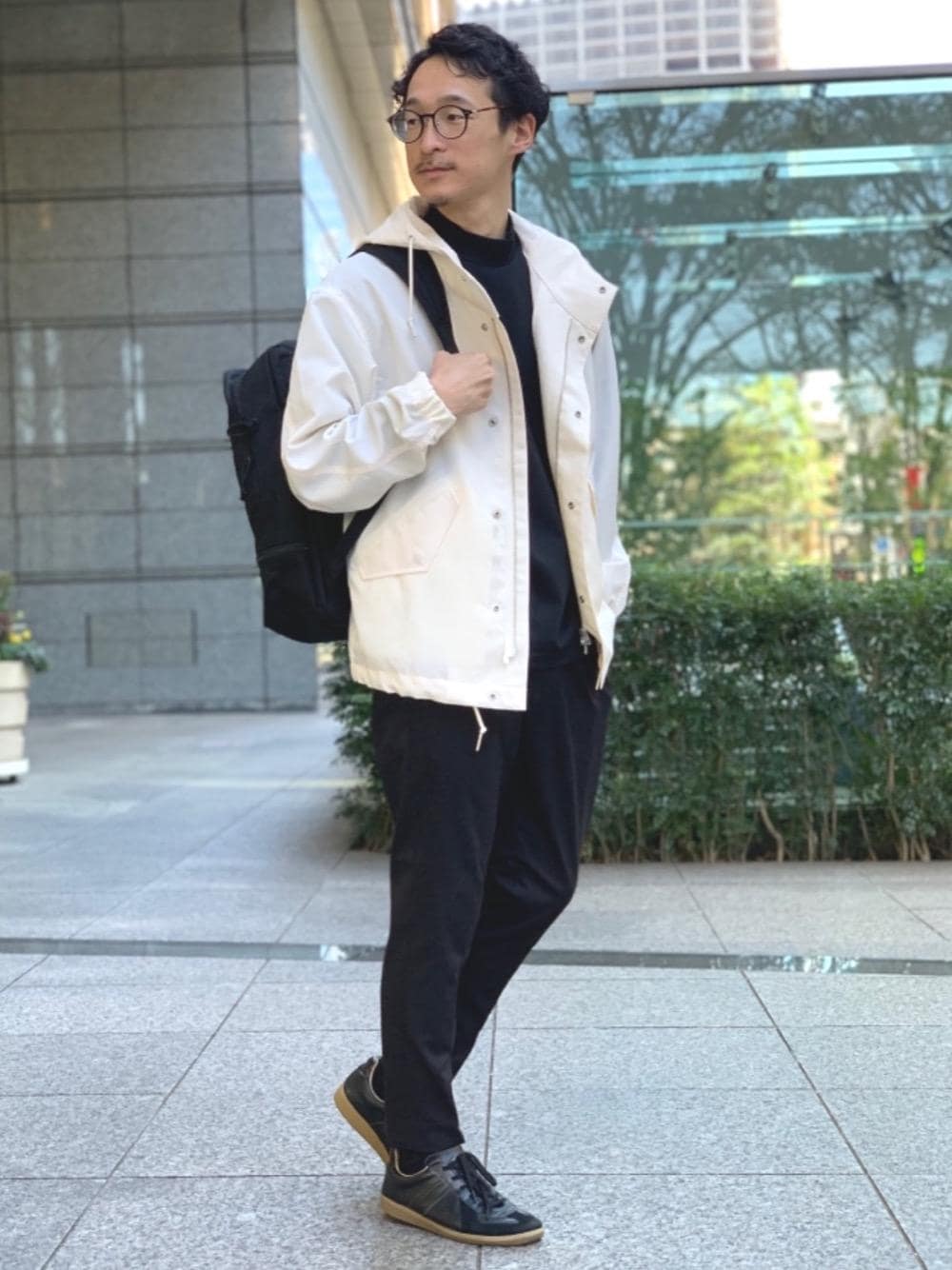 【身長】171cm【size】アウター S・カットソー S・パンツ S・シューズ 40 ブラックで合わせアウターにホワイト系アイテムを足すことで大人っぽく軽やかな雰囲気になります。 ジム通いの装いとしても良いかと思います。