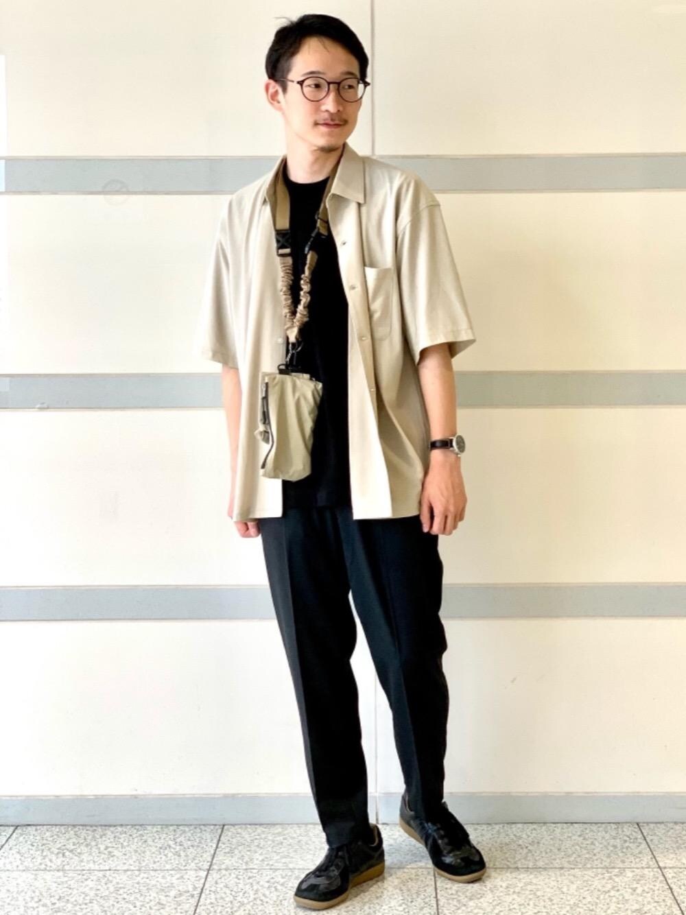 【身長】171cm【size】シャツ M・他S・シューズ 40 オールブラックにベージュを入れ、決めすぎないコーデにしました。