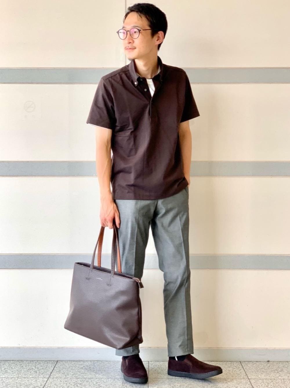 【身長】171cm【size】ポロシャツ M・カットソー、パンツ S ブラウンをベースにしたスタイリングにしました。